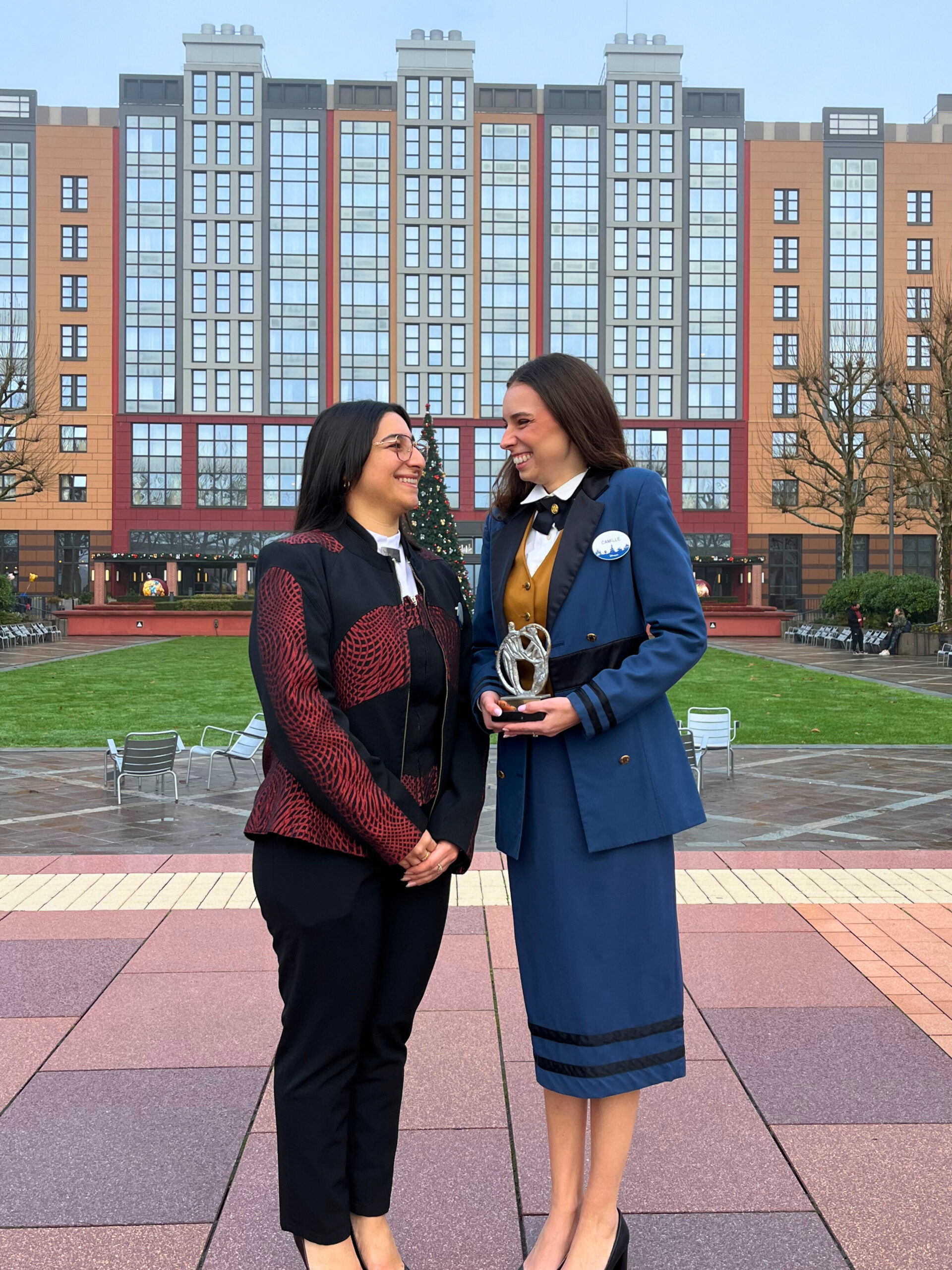 Camille : Je suis réceptionniste au Disney Newport Bay Club depuis maintenant neuf mois. Avant d’arriver ici, j’ai connu plusieurs vies, aussi bien professionnelles que personnelles : j’ai été athlète de haut niveau en athlétisme, j’ai travaillé comme juriste en étude notariale, et je suis également chanteuse. Ces expériences peuvent sembler très différentes, mais chacune m’a appris quelque chose d’essentiel : la rigueur, la persévérance, le sens du détail, l’écoute, l’expression… Tout cela m’a progressivement menée jusqu’à l’hôtellerie, un domaine où je peux enfin réunir tout ce que j’aime : le contact humain, l’excellence de service et la possibilité de créer de vrais moments pour nos visiteurs.