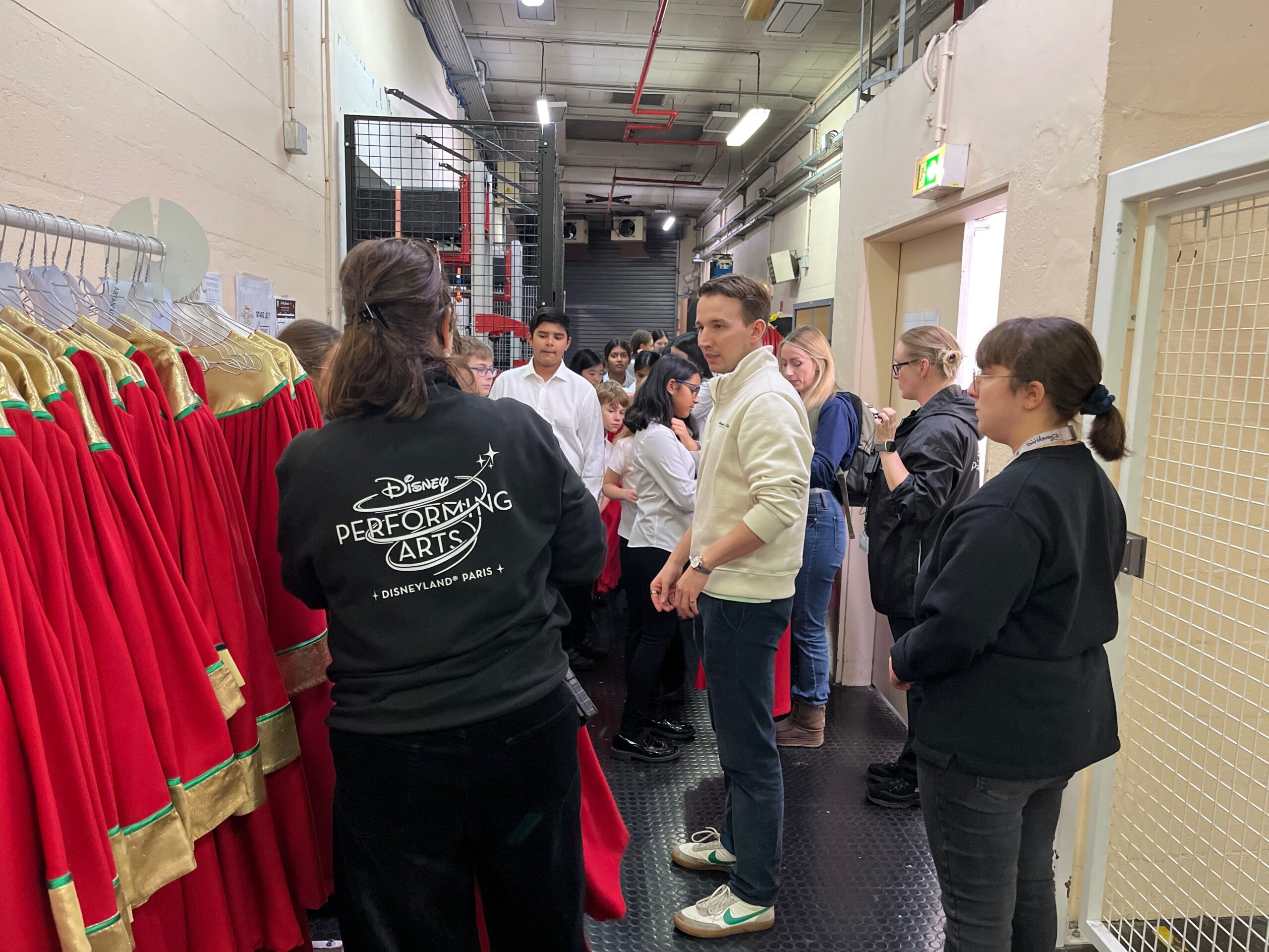 It’s 10 am, and this morning, Sue, the manager of the Disney Performing Arts programme, and her team welcome the young performers from Eltham College who will be singing on the Videopolis stage that afternoon. They come straight from the suburbs of London. But before their two upcoming performances, the group heads backstage to rehearse the show with a professional vocal coach.
