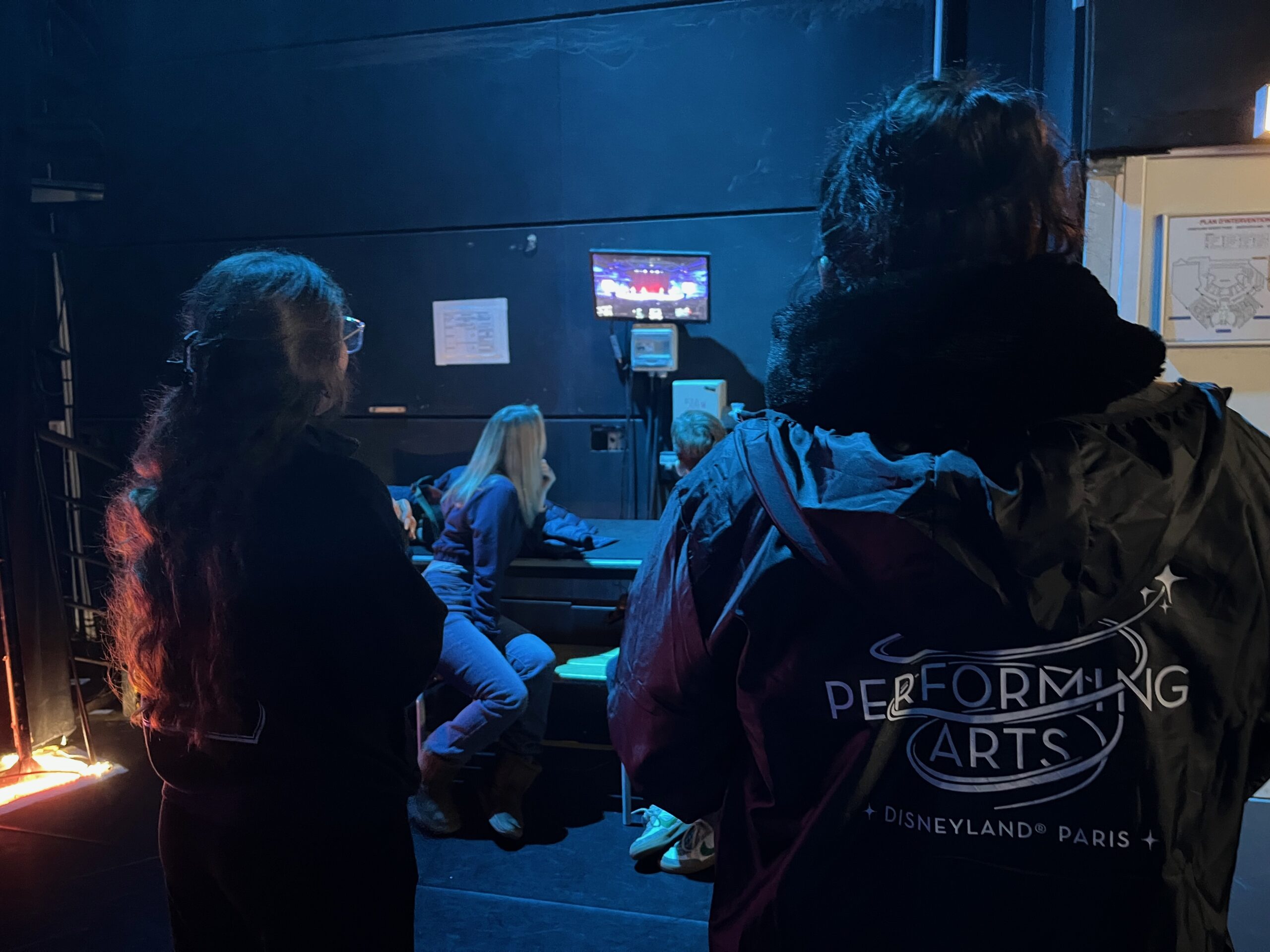 Five minutes before the start, the control room launches the pre-show, and all the seats in the Videopolis theatre are occupied. At 2:45 pm sharp, the curtain rises. The young artists faced an impressive crowd: over 400 people seated in the theatre, and nearly 1,300 in total when counting those in the adjoining restaurant and standing spectators. The Disney Performing Arts programme gave this amateur group the opportunity to shine on stage.