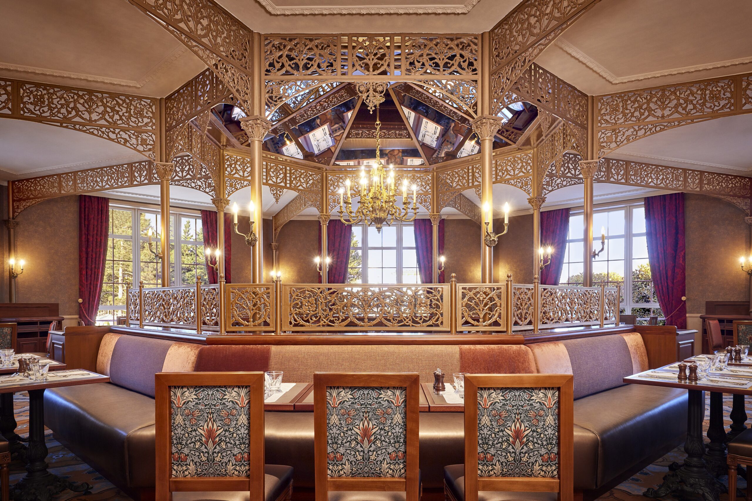 Sophie Coudré, Directrice Artistique chez Walt Disney Imagineering Paris, notamment en charge du Disneyland Hotel, précise : « L’architecture particulière de ce lieu, inspirée notamment de Gustave Eiffel, est un prolongement stylistique de Main Street, U.S.A., visible depuis les hautes fenêtres de la pièce. Ces éléments architecturaux, ajoutés au storytelling des histoires royales, nous ont inspiré l’idée de rendre hommage aux chevaux et autres montures, qui sont indispensables à nos héros et héroïnes Disney pour vivre leurs aventures. »