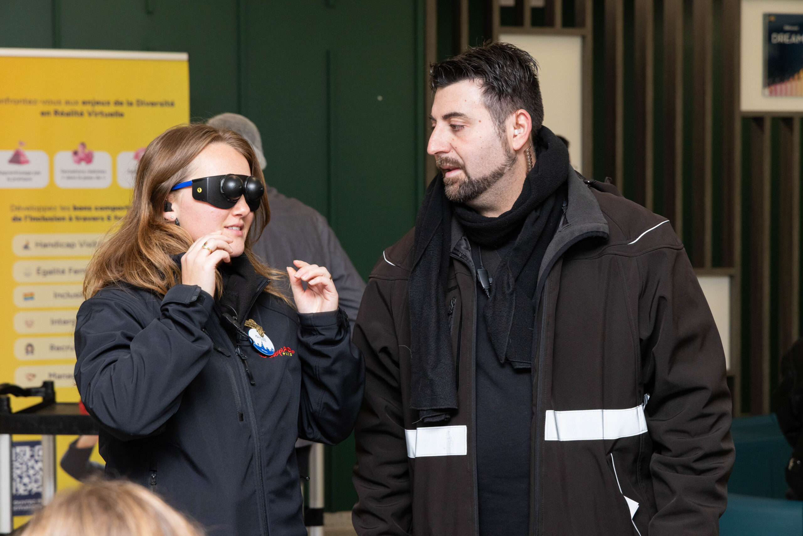 Les équipes Accessibilité Visiteurs, Mission Handicap et Diversité & Inclusion ont ouvert la semaine en allant à la rencontre des Cast Members dans les coulisses pour présenter leurs actions menées tout au long de l’année. Des démonstrations de nouveaux dispositifs destinés aux visiteurs, comme des gilets vibrants pour les personnes sourdes ou malentendantes, et des animations immersives de sensibilisation grâce à la réalité virtuelle ont rythmé la journée.
